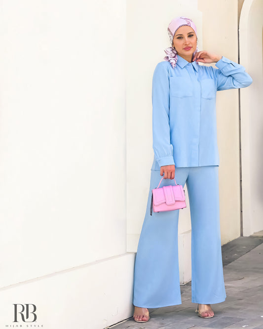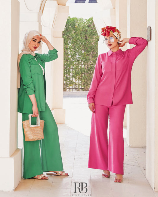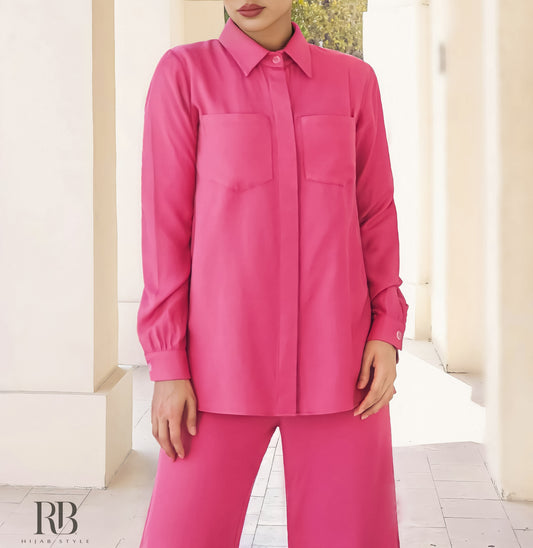 Fuchsia pocket Shirt and Wide Leg Pants Set